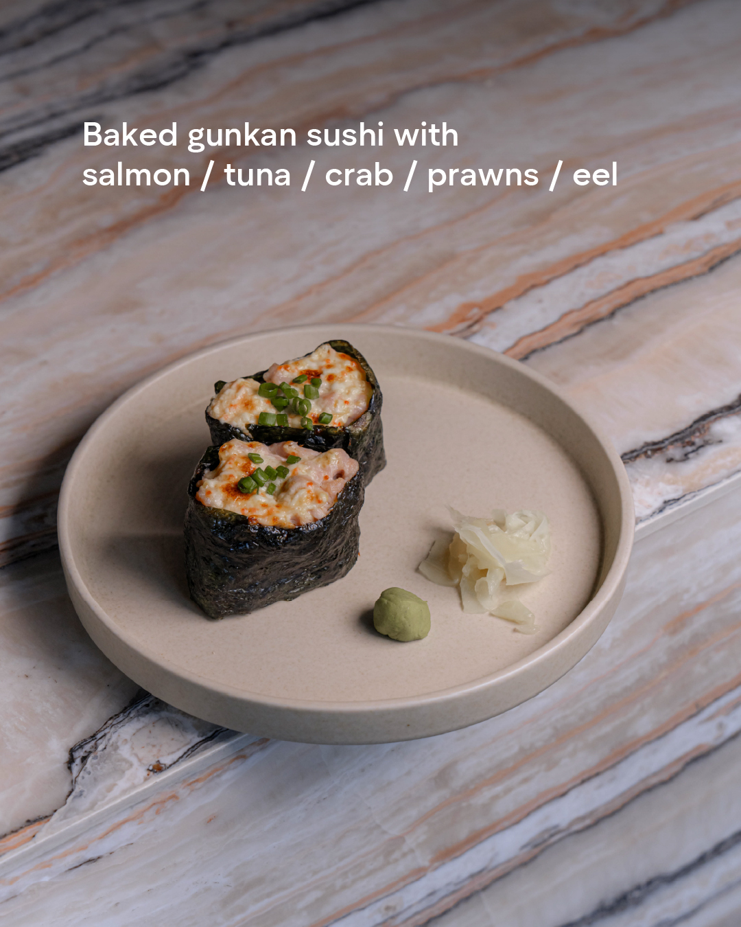 For those who prefer rich and comforting flavors, Margaret introduces a new baked sushi gunkan selection. This category brings together warm textures and umami depth, making it ideal for sharing or as a main dish.